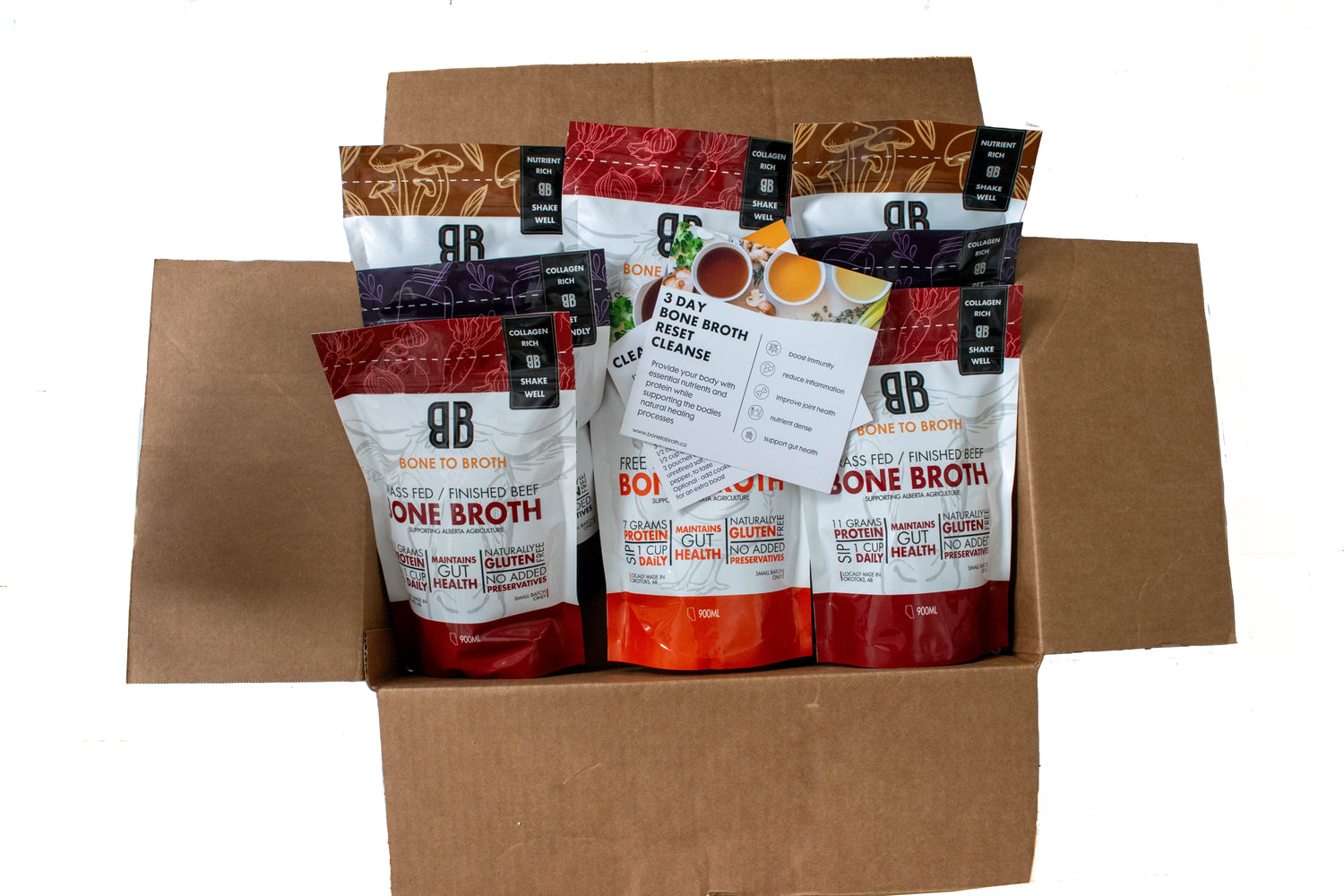 Kit includes: 9 X 900ML Liquid, Frozen Bone Broth of your choice1 X 1.5OZ Bouillon package (Powdered bone Broth, Beef or Chicken)Full cleanse guidelinesRecipe included$160 ($186 VALUE - cost savings of $26.00)
